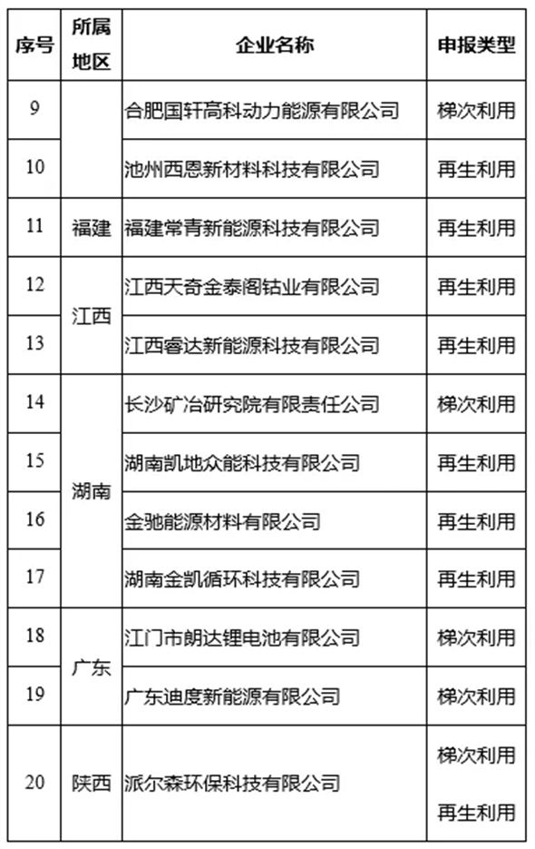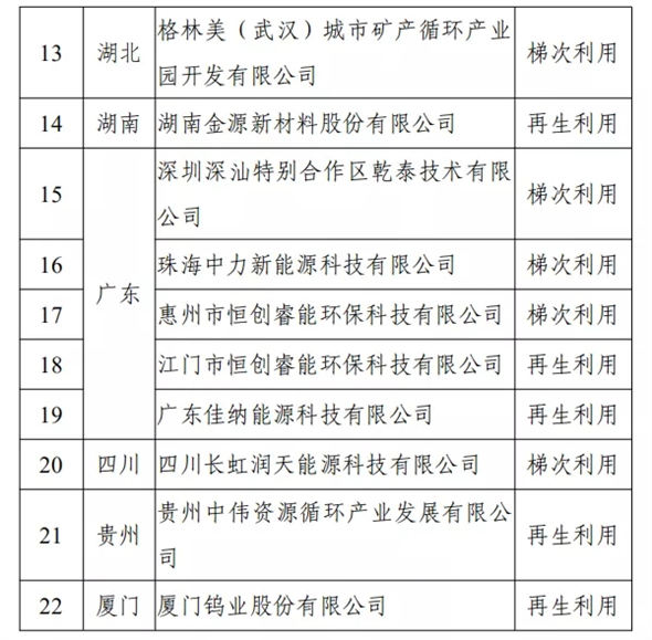 第三批《新能源汽车废旧动力蓄电池综合利用行业规范条件》企业名单