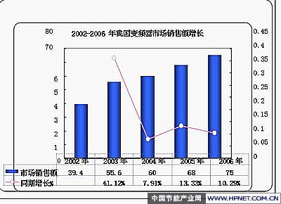 2002-2006年我国变频器市场销售额增长趋势图