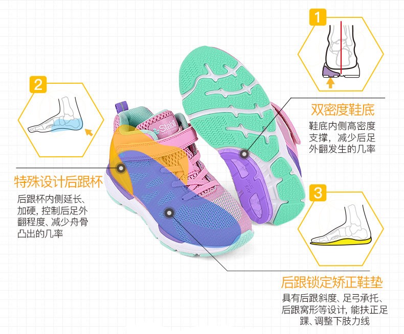 但很多人可能对矫正鞋这个名词比较陌生,其实矫正鞋就是能够帮助干预扁平足进一步恶化的功能性鞋子。它的工作原理是调整孩子足部生物发力线使其接近正常水平,减缓足弓扁平对足部肌肉和软组织的拉扯,起到提升肌肉使用效率的作用,并减少关节劳损。