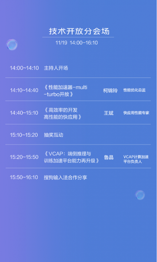 在技术开发分会场、loT开放生态分会场、应用服务分会场,vivo将借助VCAP计算加速平台和Multiturbo平台,通过与手机系统深度整合,实现跨品牌设备的互动体验和组建智能生活场景,为开发者和用户创建智能化的服务体验。想要了解loT车联网、技能平台开放的开发者,可以着重关注一下loT开放生态分会场、应用服务分会场的相关内容。
