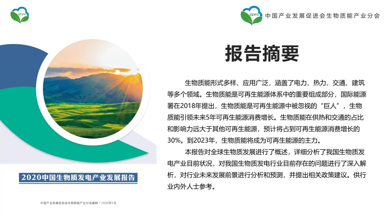 两会期间,中国产业发展促进会生物质能产业分会于2020年5月27日向全社会发布了《2020中国生物质发电产业发展报告》。