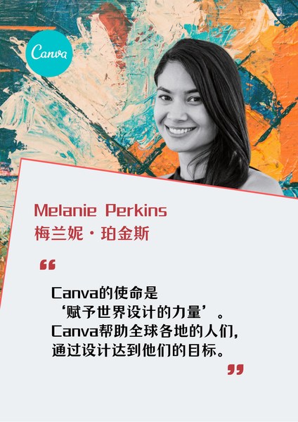 在线设计平台Canva的联合创始人兼首席执行官梅兰妮·珀金斯(Melanie Perkins),因其在科技领域的卓越影响力,入选2020年《财富》杂志40岁以下的商界精英。