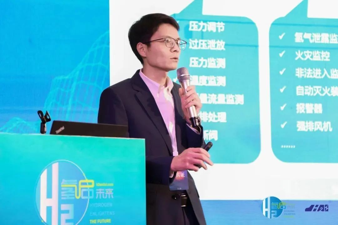 氢探新能源(烟台)有限公司董事长陈忠言分享主题为《氢电能源管理系统技术和实践》的报告。陈忠言董事长在演讲中介绍了氢电融合系统应用与示范现状,分析了用户自建氢能源系统以及氢电融合系统的痛点并提出解决方案,同时介绍了公司以氢电能源管理技术及为核心设计集成的氢电一体化系统。