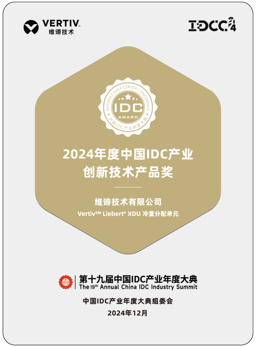 近日,维谛技术基于液冷技术的突破创新,Vertiv™ Liebert® XDU冷量分配单元荣获“2024年度中国IDC产业创新技术产品奖”,彰显持续飙升的技术创新实力。