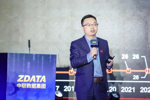 在新品发布环节,中联数据集团联合创始人董岩、红杉中国合伙人徐青、中联数据集团高级副总裁温晓军、维谛技术大中华区市场营销与产品应用部副总裁顾华,共同揭开全新产品的面纱。