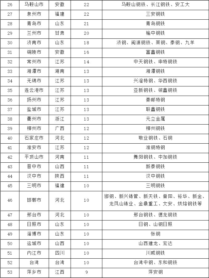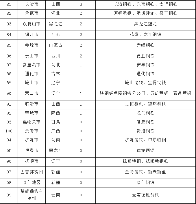 各大钢企所在地疫情统计表(附部分代表钢企)