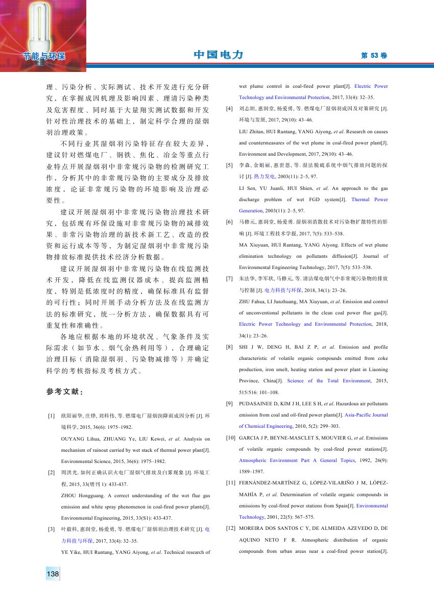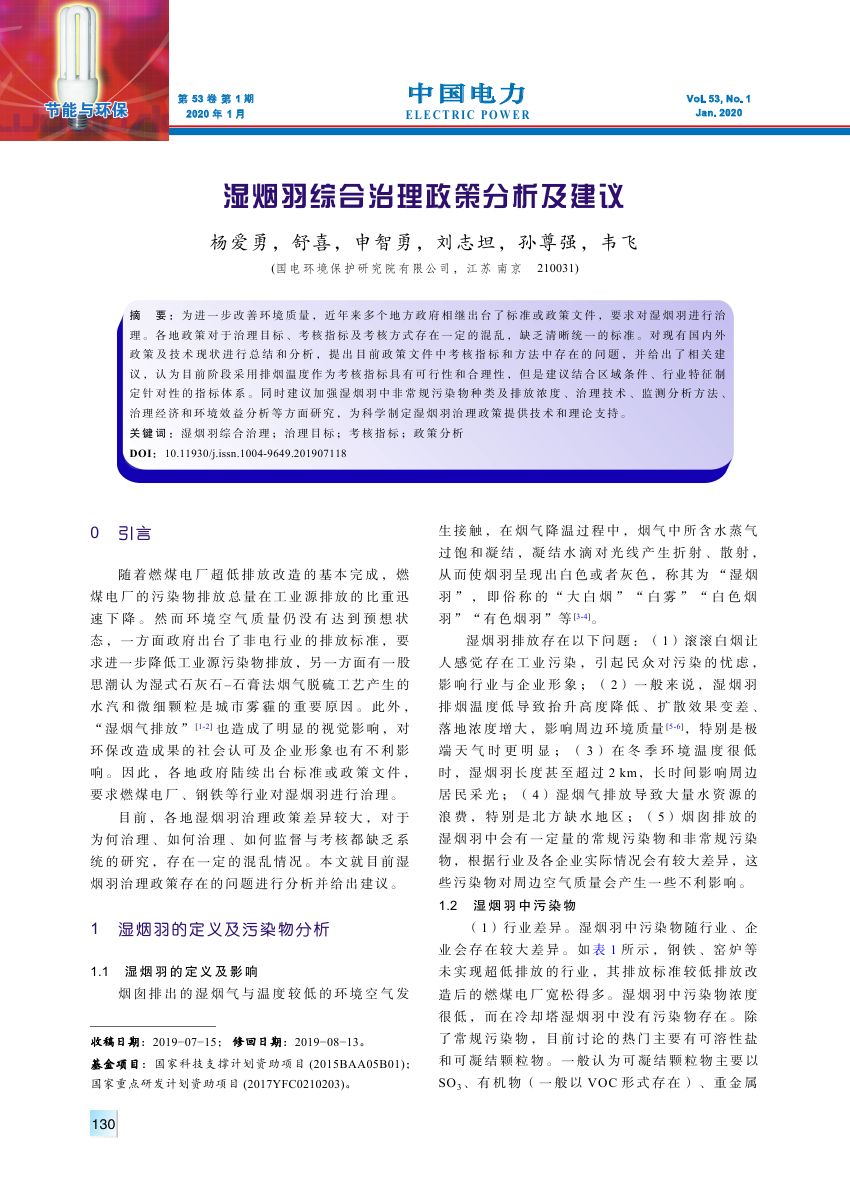 为进一步改善环境质量,近年来多个地方政府相继出台了标准或政策文件,要求对湿烟羽进行治理。各地政策对于治理目标、考核指标及考核方式存在一定的混乱,缺乏清晰统一的标准。对现有国内外政策及技术现状进行总结和分析,提出目前政策文件中考核指标和方法中存在的问题,并给出了相关建议,认为目前阶段采用排烟温度作为考核指标具有可行性和合理性,但是建议结合区域条件、行业特征制定针对性的指标体系。同时建议加强湿烟羽中非常规污染物种类及排放浓度、治理技术、监测分析方法、治理经济和环境效益分析等方面研究,为科学制定湿烟羽治理政策提供技术和理论支持。