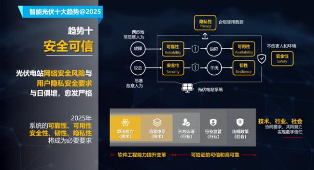 智能光伏十大趋势为:全面数字化、AI驱动智能升级、电站无人化、主动支撑电网、光储共生、虚拟电站、重构极致安全、高频高密、模块化设计、安全可信。