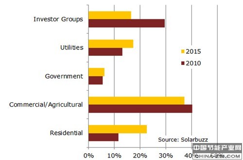 在未来的五年,欧洲按客户应用划分的市场分布将会有一些变化,住宅市场份额将会翻一番。此外,投资集团市场份额会降低近一半,而商用(包括农用)市场仍然是占有最大份额的市场分支。