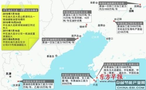 除了中石油近13个月来在大连连续发生的四起事故,今年6月,中海油旗下的蓬莱19-3油田发生溢油,至今仍未完全封堵;7月12日,中海油绥中36-1油田也发生溢油事故。