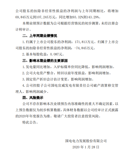 国电电力方面表示,影响本期业绩的主要原因有以下几点: