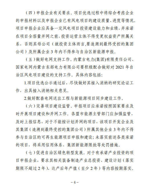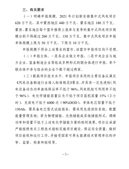 为保障项目尽快开工建设,请各盟市能源主管部门按照以下要求组织开展2021年集中式风电、光伏发电保障性并网项目的申报工作。