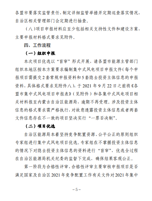各盟市能源主管部门按照2021年风电、光伏发电项目竞争配置工作方案(详见附件)做好项目申报工作,并于2021年9月22日前将项目相关材料以正式文件(可编辑电子版的申报资料(U盘)单独封装)报送自治区能源局,逾期视为自动放弃。