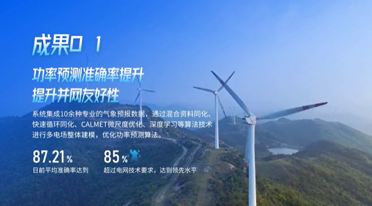 项目实施过程中,金风慧能为国电电力内蒙古新能源提供了全方位的解决方案和技术支持,系统搭建完成后,所辖场站功率预测准确率显著提高。同时,双方积极探索气象预报与新能源业务深度融合的应用模式,该系统可提供未来7天16种异常天气预警,并开发基于气象预报的可根据风速、降雨等因素自定义约束条件的计划检修的模块,在提高新能源生产防灾减灾能力的同时,实现了综合提升经济效益159万元的丰硕成果。