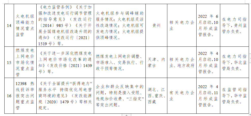 近日,国家能源局官网发布关于印发《2022年能源监管重点任务清单》的通知,主要包含国家“十四五”能源规划重点任务年度落实情况专项监管、第一批以沙漠、戈壁、荒漠地区为重点的大型风电光伏基地建设情况专项监管、