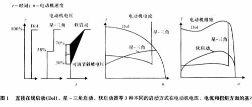 (1)直接在线启动或星-三角启动产生的电压和电流瞬变容易导致电气故障。电压和电流的瞬变现象可能导致当地的电网过荷,从而引起不良的电压变化,并最终影响到同电网中的其它电气设备。