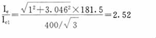 在本次测试中,电压没有超过额定电压,故过电流仅是谐波作用下的结果,现根据实际参数计算其过流情况,根据测试时基波电压为181.5V(相电压)谐波电流为基波电流的304.6%,电容器额定电压400V,三相三角接法,由此可计算得其稳态过电流对额定电流的比值为: