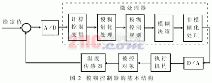 变频空调器的工作原理可参见图2,它可分为模糊输入接口、模糊推理判别决策机构和模糊输出接口三个部分。