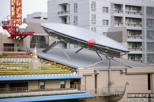 林宪德说,之所以将光伏系统设计成叶子造型,是因为叶子吸收太阳能可以达到更高的能源转换效率。为了追求更多日照,建筑南端设有船头样貌的光电系统角度控制台,通过舵型转盘随光照条件切换光伏系统的角度。这套光伏系统全年发电量超过20000千瓦时,可满足该建筑1/7的用电需求。