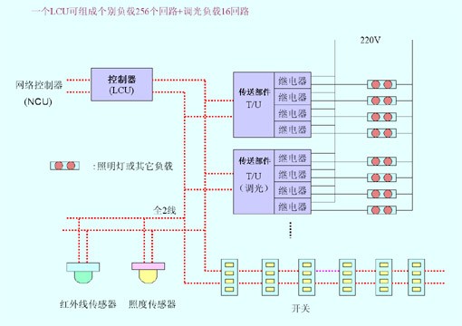 LCU的功能: 1、接受由开关送来的信息,向指定的负载发出ON/OFF命令 2、向NCU发送控制状况或从NCU接受有关控制的命令