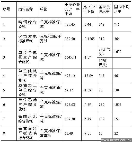 重点能耗企业产品单位能耗水平比较