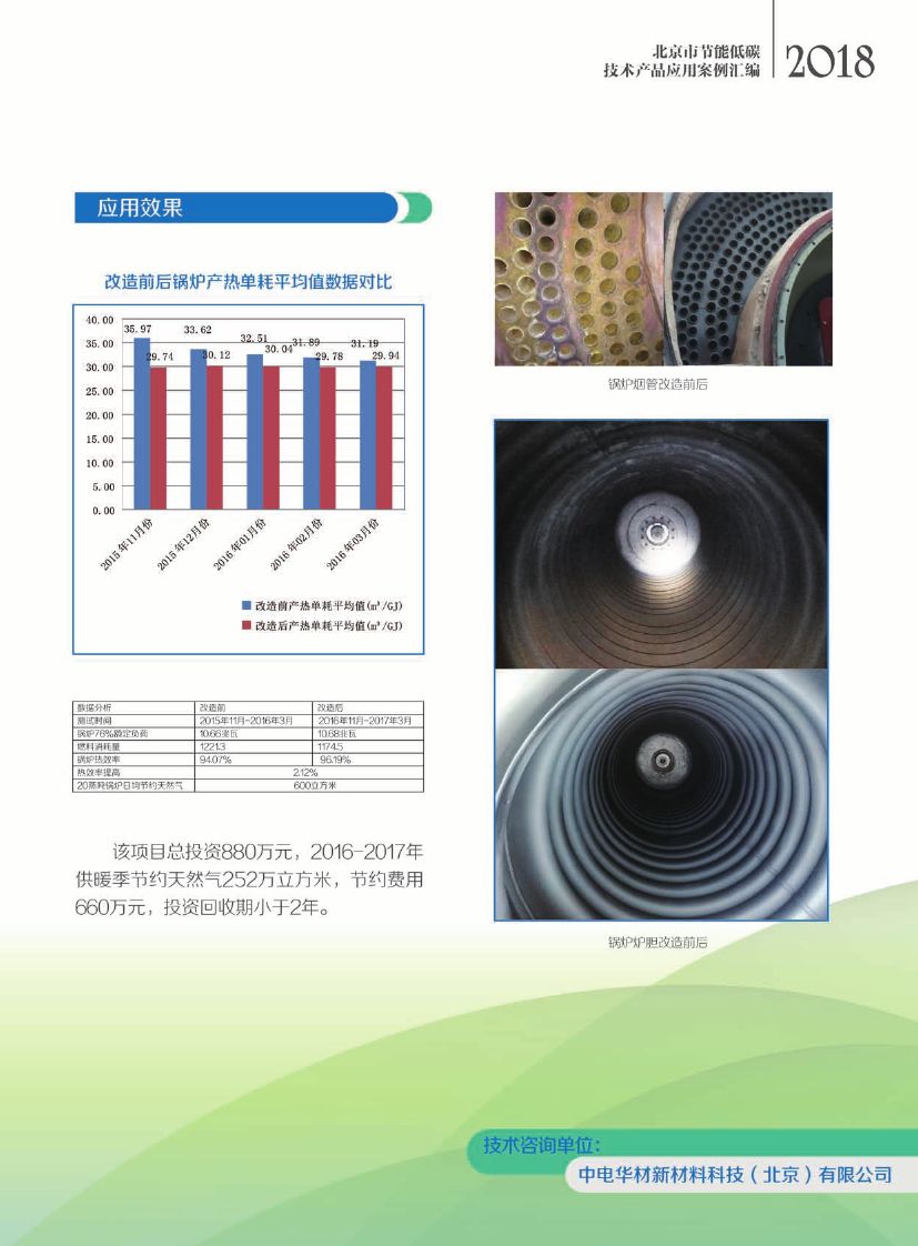 该产品是将稀土氧化物为主要材料的无毒水基物质涂敷在锅炉受热面上,起到保护锅炉受热面的作用,具有抗沾污结渣、耐高温腐蚀特点。该产品改变金属表面性能,提高吸收面发射率,在 800 度耐热变性试验下涂层表面无粉化、无鼓泡、无裂纹、无剥落现象,锅炉热效率提高 2%以上。