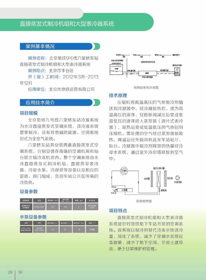该技术将直接蒸发冷却技术应用于地铁空调通风系统,把传统的冷冻水冷媒系统变为制冷剂冷媒系统, 减少系统的中间换热环节;该技术无需设置冷冻水泵,解决了超大冷量系统制冷剂远距离、大高差输送和分配问题,同时解决变冷量制冷剂蒸发换热器的设计制造问题,提高制冷机组的运行效率。